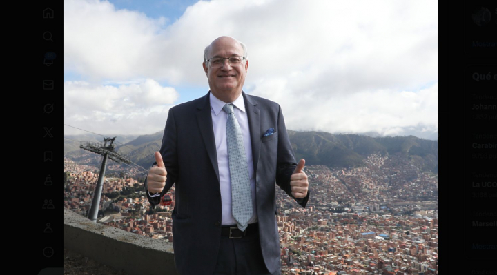 El mensaje está acompañado de una fotografía en la que se observa a Goldfajn con la ciudad de La Paz y el teleférico como fondo.