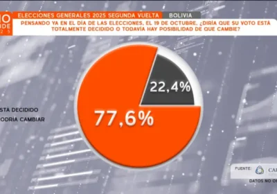 Bolivia y Brasil unen fuerzas para combatir delitos fronterizos 13-10-2025 10:04 Seguridad «Después del debate, cena formal en Las Velas»: Paz y Lara salieron del hotel a comer anticuchos 13-10-2025 10:00 Política VideosBalotaje 2025,NP Analista Edgar Sánchez: afirma que voto popular indígena definirá balotaje 13-10-2025 09:59 Política VideosBalotaje 2025 Los votos silenciosos pueden decidir el balotaje: indecisos y nulos ponen en vilo a Quiroga y Paz 13-10-2025 09:52 PolíticaBalotaje 2025,Elección Presidencial 2025,NP Accidente en la avenida Simón López: cisterna provoca choque y daños en Cochabamba 13-10-2025 09:33 Seguridad VideosAdultos Filas extensas en los surtidores: Choferes analizan medidas de presión ante la falta de combustibles 13-10-2025 09:30 Economía Samuel elogia a Rodrigo Paz tras el debate: ‘tiene capacidad de liderazgo’ 13-10-2025 09:29 PolíticaBalotaje 2025 Evo Morales busca alianza política para participar en las elecciones subnacionales de 2026 13-10-2025 09:20 Política Más noticias