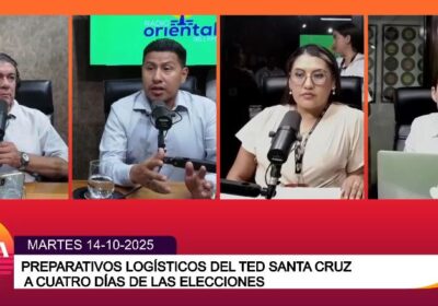 Terminal de Buses de La Paz reanuda viajes luego de los bloqueos en Cochabamba 14-10-2025 21:55 Economía Caso Botrading: Emiten orden de aprehensión contra exvicepresidente de YPFB 14-10-2025 21:47 Seguridad Militares logran sofocar el fuego en el Cerro Tunupa, 125 familias fueron afectadas 14-10-2025 21:34 Vida Mueren dos extranjeros mineros que estaban en un contenedor, arrastrado por una riada en La Paz 14-10-2025 21:18 Seguridad Egipto confirmó la creación de un comité de 15 tecnócratas para administrar Gaza tras el alto el fuego 14-10-2025 21:08 Mundo El TED Santa Cruz garantiza transparencia y logística para la segunda vuelta del 19 de octubre 14-10-2025 20:54 Política VideosLA HORA PICO,NP Caso Dorgathen: Comisión de fiscales llega a La Paz para tomar declaraciones de las cabezas de la Aduana y ANH 14-10-2025 20:52 Seguridad VideosNP TSE aclara que en el balotaje sólo contarán los votos válidos: blancos y nulos sólo tendrán un valor estadístico 14-10-2025 20:47 PolíticaBalotaje 2025 Más noticias